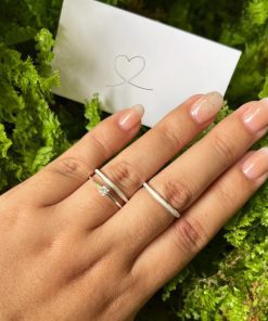 As Alianças de Namoro Modelo Ely, em Prata 950, possuem 7mm de largura e um design sofisticado e moderno. O acabamento chanfrado semi anatômico proporciona um brilho elegante e um encaixe confortável, ideal para o uso diário.