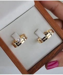 Alianças de Casamento e Noivado | Moeda Antiga | 3 Frisos | Forro Aço Cirúrgico Opcional | Banhado a Ouro 18k
