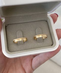 As alianças de casamento e noivado possuem um design único e sofisticado, feitas em moeda antiga e com 3 frisos laterais, proporcionando um toque de elegância e distinção. O forro em aço cirúrgico é opcional, garantindo conforto e sendo ideal para quem tem pele sensível. Com banho de ouro 18k, as alianças são resistentes, duráveis e brilham com intensidade.