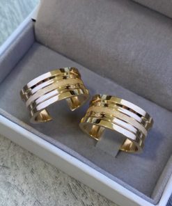 Este modelo estilo Bulgari, confeccionado em moeda antiga e com banho de ouro 18k, é ideal para casais que desejam aliar sofisticação e imponência em suas alianças de casamento. Com acabamento anatômico e espessura aproximada de 2,5mm, proporciona conforto excepcional no uso diário.