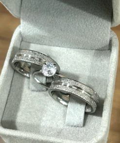 Alianças de Namoro em Aço Cirúrgico | Par de Alianças Prata 4mm | Diamantadas com Frisos Laterais