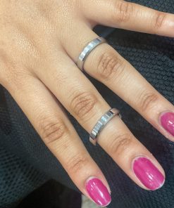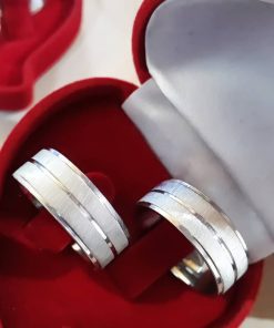 Par De Alianças Prata Em Aço Cirúrgico 6mm Diamantado Chanfrado Masculino Fosco Com 2 Friso
