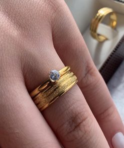 Alianças de Casamento 4mm Diamantadas em Aço Banhado a Ouro 18K – Modelo Katy Anatômico