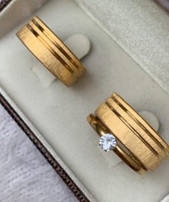 Par De Alianças Aço Cirúrgico Banhado A Ouro 18k 4mm – 5 pedras
