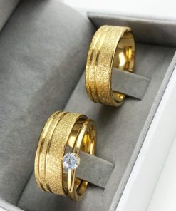 Alianças De Aço Cirúrgico Banhado A Ouro 18k – 8mm Fosco Com Friso