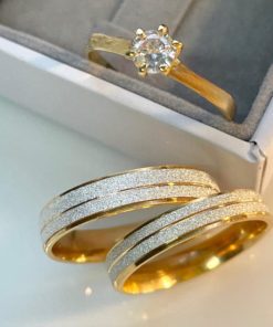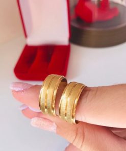Alianças De Noivado Aço Cirúrgico Banhado A Ouro 18k – 8mm 2 Fios