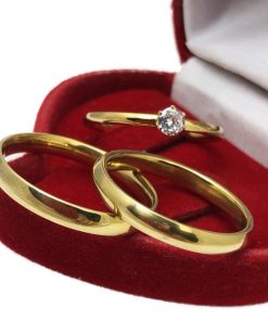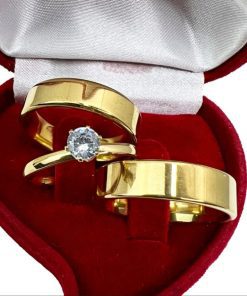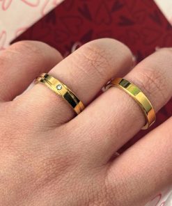 Par De Alianças Aço Cirúrgico Banhado A Ouro 18k 4mm Liso Tradicional 1 Pedra Central