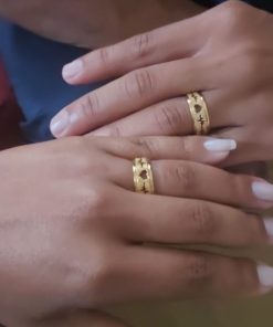 Par De Alianças Aço Cirúrgico Banhado A Ouro 18k – 8mm – Com Batimentos E Diamantado