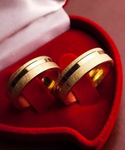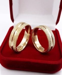 Par De Alianças Aço Cirurgico Banhado A Ouro 18k – 6mm Fosco