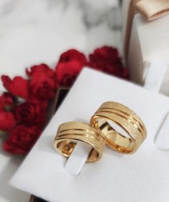 Par De Alianças Aço Cirúrgico Banhado A Ouro 18k – 6mm MOD 65