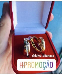 Par De Alianças Aço Cirúrgico Banhado A Ouro 18k – 6mm – Liso E Feminino Com Pedrinha