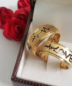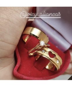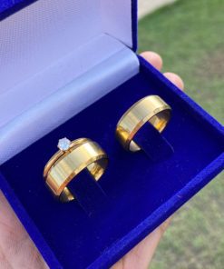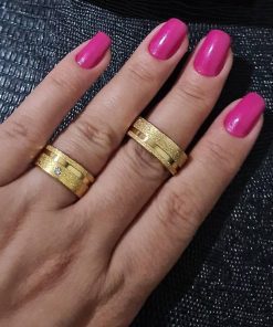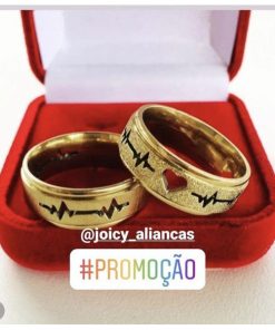 Alianças De Noivado Em Aço Cirúrgico Banhado A Ouro 18k – 8mm