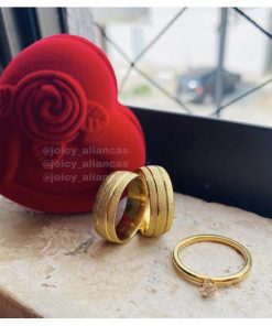 Par De Alianças Aço Cirúrgico Banhado A Ouro 18k – 8mm Modelo Sther