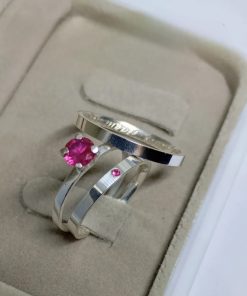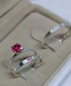 Alianças de Namoro em Prata 950 2mm | Modelo Rosa | Reto Semi Anatômico | Anel Solitário Incluso
