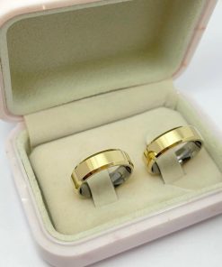 Alianças de casamento | Par de alianças em moeda antiga 4mm chanfrado – Banho de ouro 18k