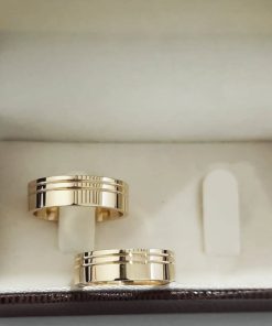 Alianças de Casamento 8mm | Modelo Anatômico com 2 Frisos Laterais | Moeda Antiga Banhada a Ouro 18K