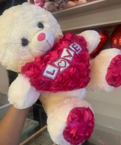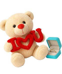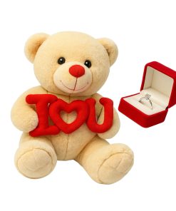 Urso de Pelúcia 25cm I Love U com Anel Solitário Prata 950 – Presente Romântico para Namorada