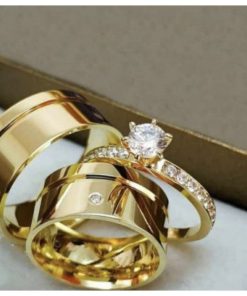 Trio De Alianças Aço Cirúrgico Banhado A Ouro 18k – 8mm – Fosco
