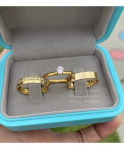 Alianças de Casamento 6mm | Modelo Eliza | Feminina com 3 Pedras de Zircônia | Banhado a Ouro 18k