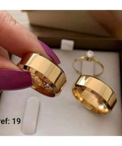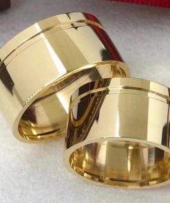 Alianças de Casamento 5mm | Modelo Tradicional | Friso Central | Moeda Antiga Banhada a Ouro 18K