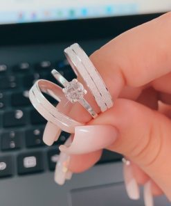 Alianças Finas de Namoro 3mm em Prata 950 | Centro Diamantado | Com Anel Opcional Cor Rosa