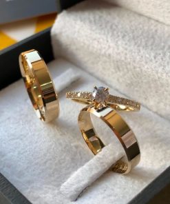 Alianças de Casamento 8mm | Largura Grossa | Liso Polido | Anel Cravejado Anel Solitário Incluso