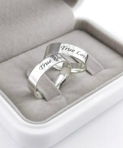 Alianças de Namoro 5mm em Prata 950 | Modelo Semi Anatômico Liso | Personalização “True Love”