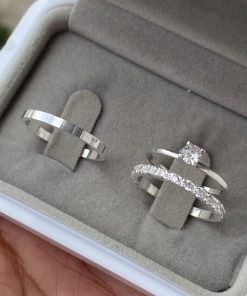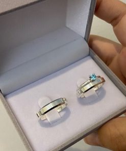 Alianças de Namoro 3mm em Prata 950 | Diamantado Reto Semi Anatômico | Feminina com 1 Pedra