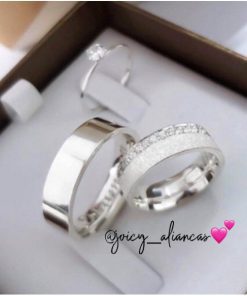 Alianças de Namoro Grossas 10mm em Prata 950 | Modelo Exclusivo | Diamantado com 2 Frisos Laterais
