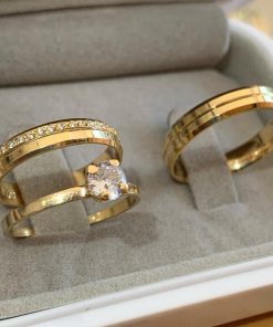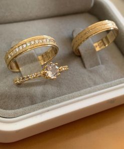 Aliança de Ouro 18K | Modelo Chanfrado Todo Diamantado Semi-Anatômico 4mm | Casamento e Noivado