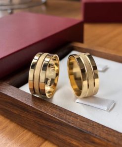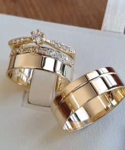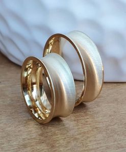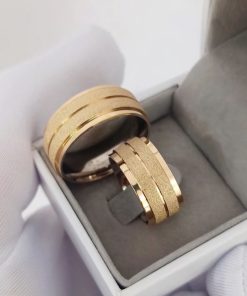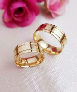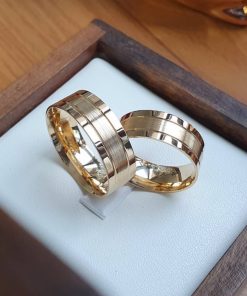 Alianças de Casamento em Moeda Antiga Banhada a Ouro 18K – 8mm Reta Anatômica com 2 Frisos