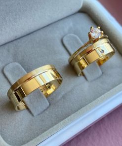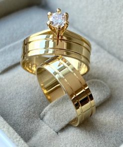 Alianças de Casamento 4mm | Modelo Pureza | Chanfrado em Moeda Antiga | Banhado a Ouro 18k