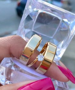 Alianças de Casamento 8mm | Largura Grossa | Liso Polido | Anel Opcional com Pedra de Zircônia