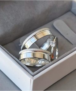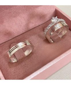 Alianças de Namoro em Prata 950 4mm | Modelo Diamantado com Friso Largo Lateral | Semi Anatômico