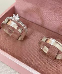 Alianças de Namoro em Prata 950 2mm | Modelo Diamantado Fina | Alianças Finas | Semi Anatômico