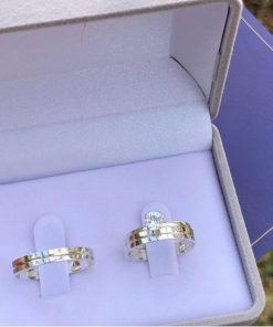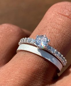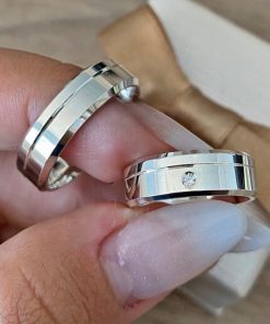 Alianças de Namoro em Prata 950 | Modelo Valentina | Anatômico 8mm Diamantado com 1 Friso Lateral