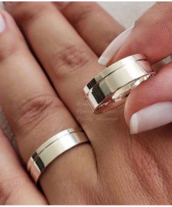 Alianças de Namoro em Prata 950 | Modelo Sandy | 3mm Reto Semi Anatômico | Liso com 1 Friso Central
