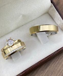 Alianças de Namoro Prata 950 – Modelo Nataly – Friso Lateral com Filete Banhado a Ouro 18K 6mm