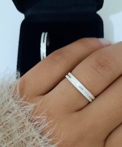 As Alianças de Namoro Modelo Tiffany, em Prata 950, possuem 8mm de largura e apresentam um design sofisticado e elegante. O acabamento diamantado com 2 frisos canto a canto adiciona brilho e modernidade à peça. O modelo feminino é um verdadeiro destaque, contando com 1 pedra de zircônia vinho em formato de coração no centro, além de 10 pedras de zircônia brancas distribuídas em 5 de cada lado, totalizando 11 pedras, que conferem brilho e sofisticação ao modelo. O modelo masculino mantém o mesmo acabamento diamantado com 2 frisos laterais, proporcionando um visual imponente e equilibrado. Para complementar o conjunto, há a opção de incluir um anel solitário cravejado com pedra de zircônia, agregando ainda mais elegância à peça.