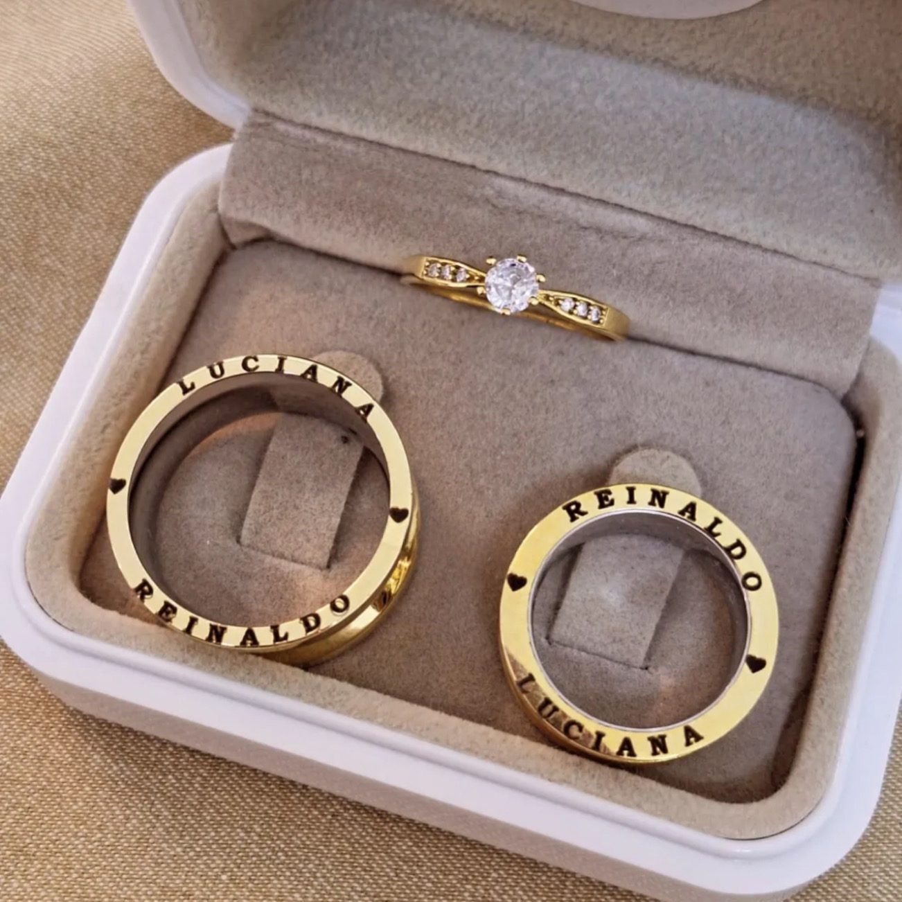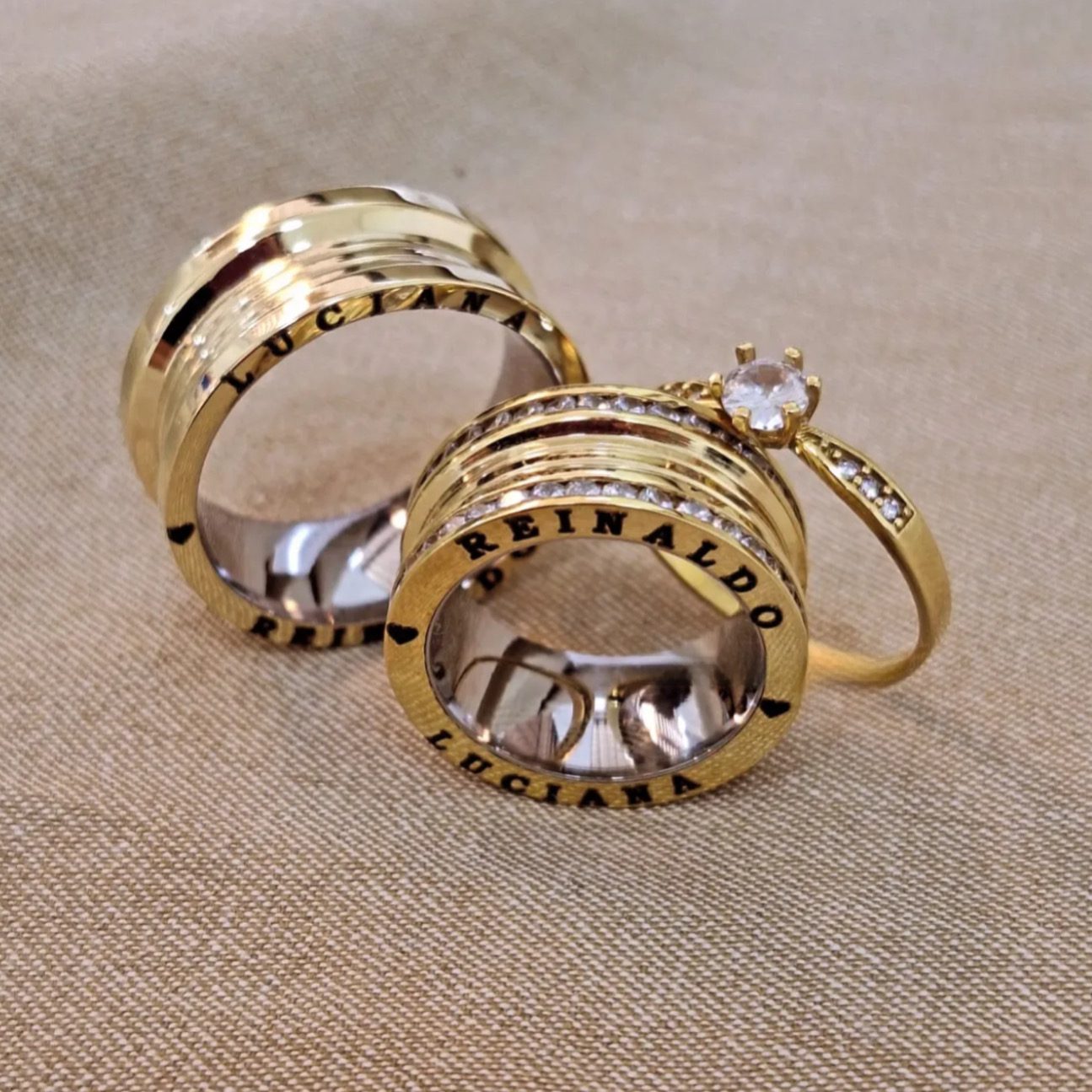 • Oferecemos a opção de gravação no par de alianças. No entanto, pedimos que verifique atentamente os tamanhos antes de solicitar a gravação, pois, em caso de troca devido ao tamanho, a gravação impede a devolução ou troca do produto.