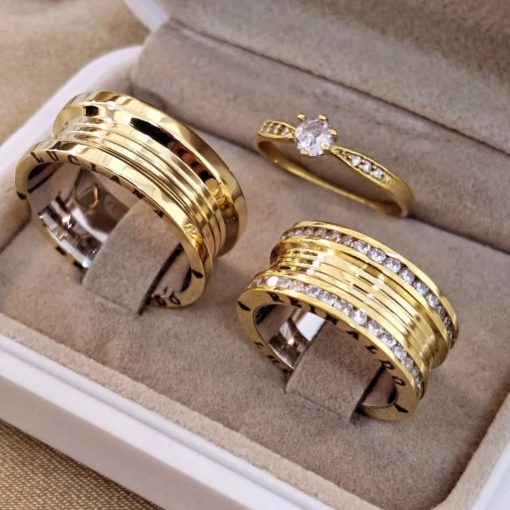 O modelo estilo Bulgari de 10mm é uma escolha sofisticada e imponente para casais que buscam alianças luxuosas e marcantes. Fabricadas em moeda antiga e banhadas a ouro 18k, essas alianças combinam design moderno com alta durabilidade. A aliança feminina possui aproximadamente 60 pedras de zircônia cravejadas, sendo 30 de cada lado, com a quantidade variando conforme o tamanho da peça. O modelo masculino, robusto e elegante, apresenta dois frisos centrais, mantendo o estilo clássico Bulgari. Além disso, oferecemos a opção de gravação a laser e anel solitário incluso para complementar o conjunto.
