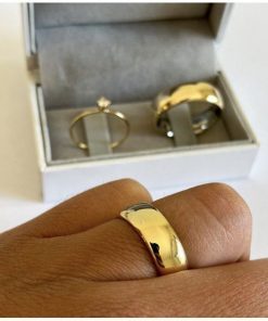 É uma aliança com estrutura interna de aço cirúrgico, recoberta por uma chapa de Ouro 10K fixada com tecnologia avançada. Essa técnica proporciona a aparência luxuosa do ouro com uma estrutura resistente e confortável, garantindo maior longevidade e brilho intenso.
