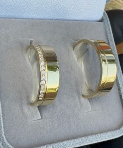 É uma aliança com estrutura interna de prata, recoberta por uma chapa de Ouro 10K fixada com tecnologia avançada. Essa técnica proporciona a aparência luxuosa do ouro com uma estrutura resistente e confortável, garantindo maior longevidade e brilho intenso.