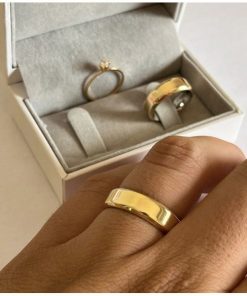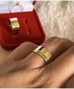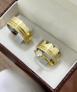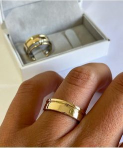 Alianças de Casamento Ouro 10K com Revestimento em Aço 7mm | Modelo Anatômico Polido com Friso Lateral