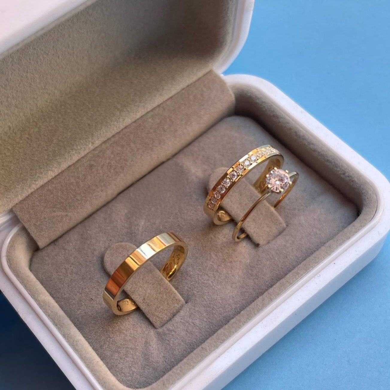 • Oferecemos a opção de gravação no par de alianças. No entanto, pedimos que verifique atentamente os tamanhos antes de solicitar a gravação, pois, em caso de troca devido ao tamanho, a gravação impede a devolução ou troca do produto.