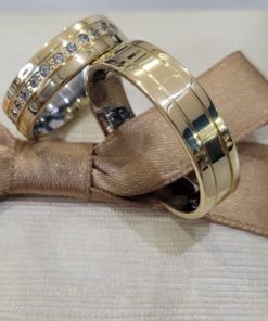 Alianças de Casamento 6mm Anatômico com 2 Frisos Laterais – Feminina com 15 Pedras de Zircônia (Meia Volta)