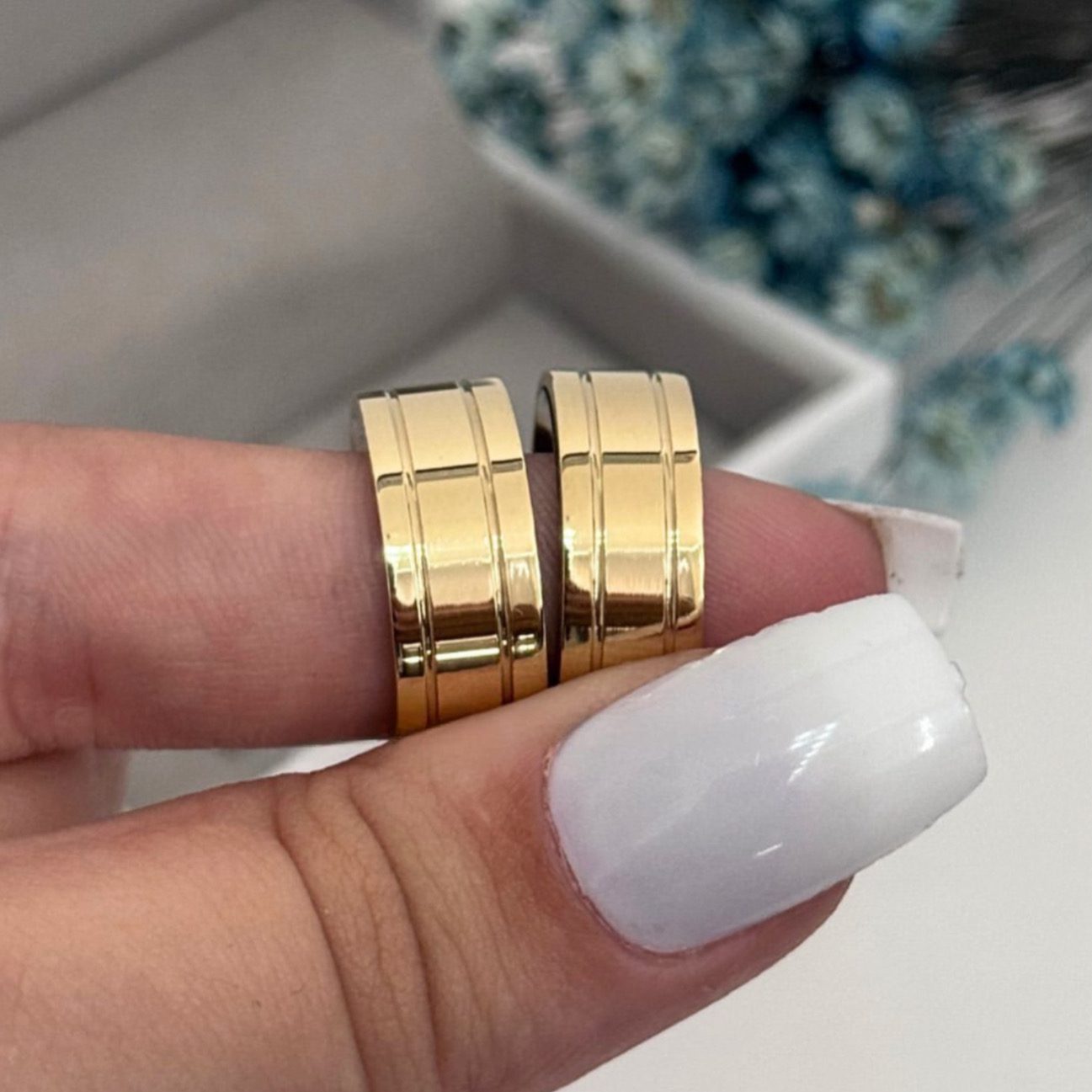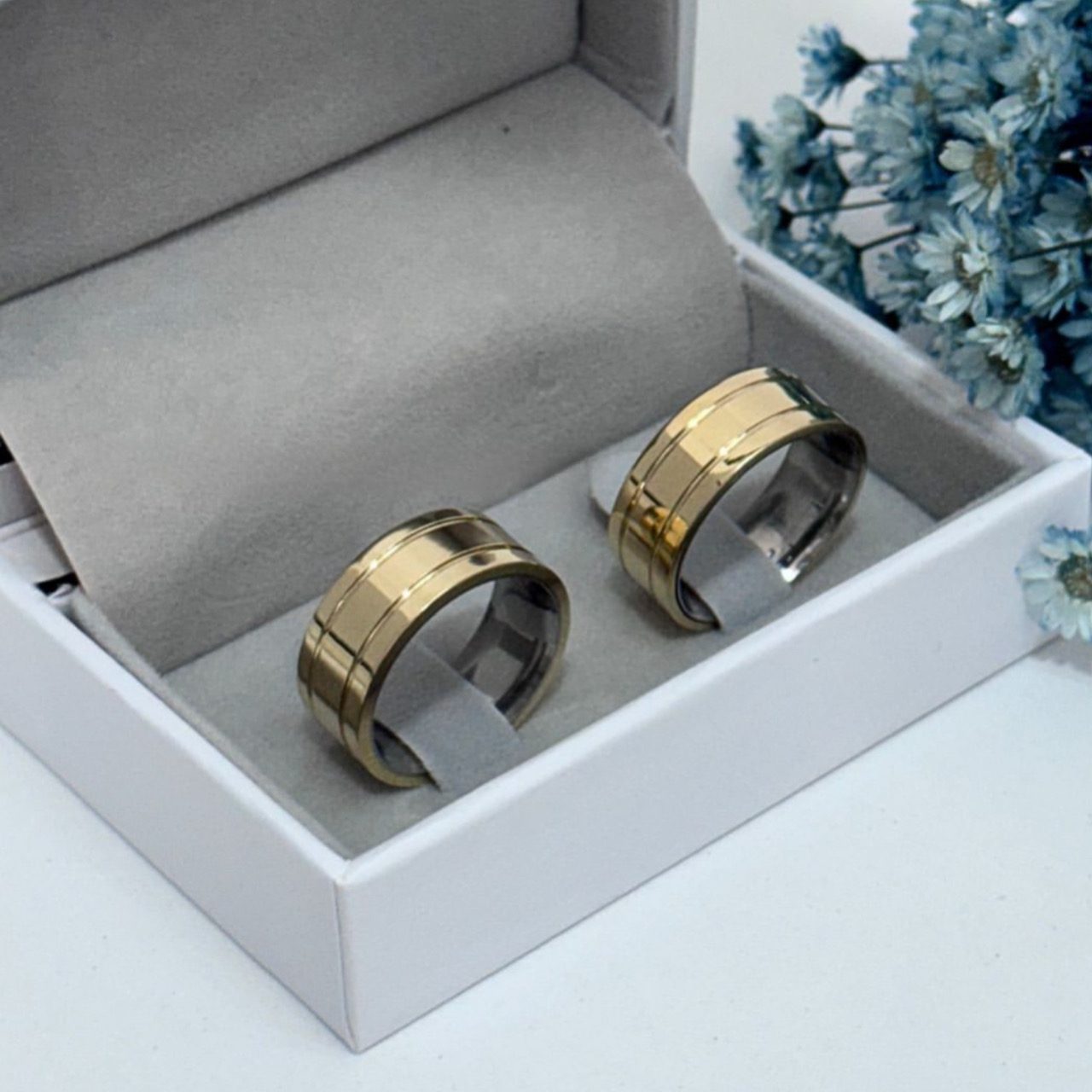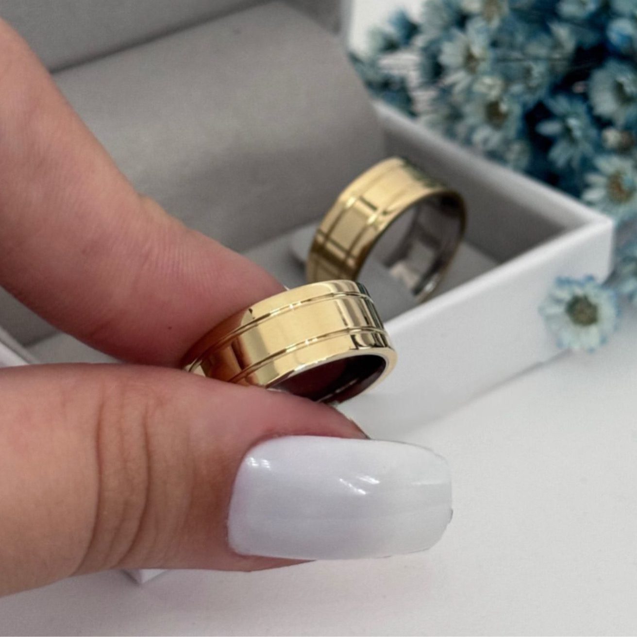 Imponentes e sofisticadas, as alianças Kiara de 8mm são perfeitas para casais que buscam um design marcante e moderno.