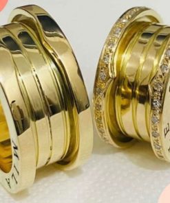 Este modelo estilo Bulgari, confeccionado em moeda antiga e com banho de ouro 18k, é ideal para casais que desejam aliar sofisticação e imponência em suas alianças de casamento. Com acabamento anatômico e espessura aproximada de 2,5mm, proporciona conforto excepcional no uso diário.