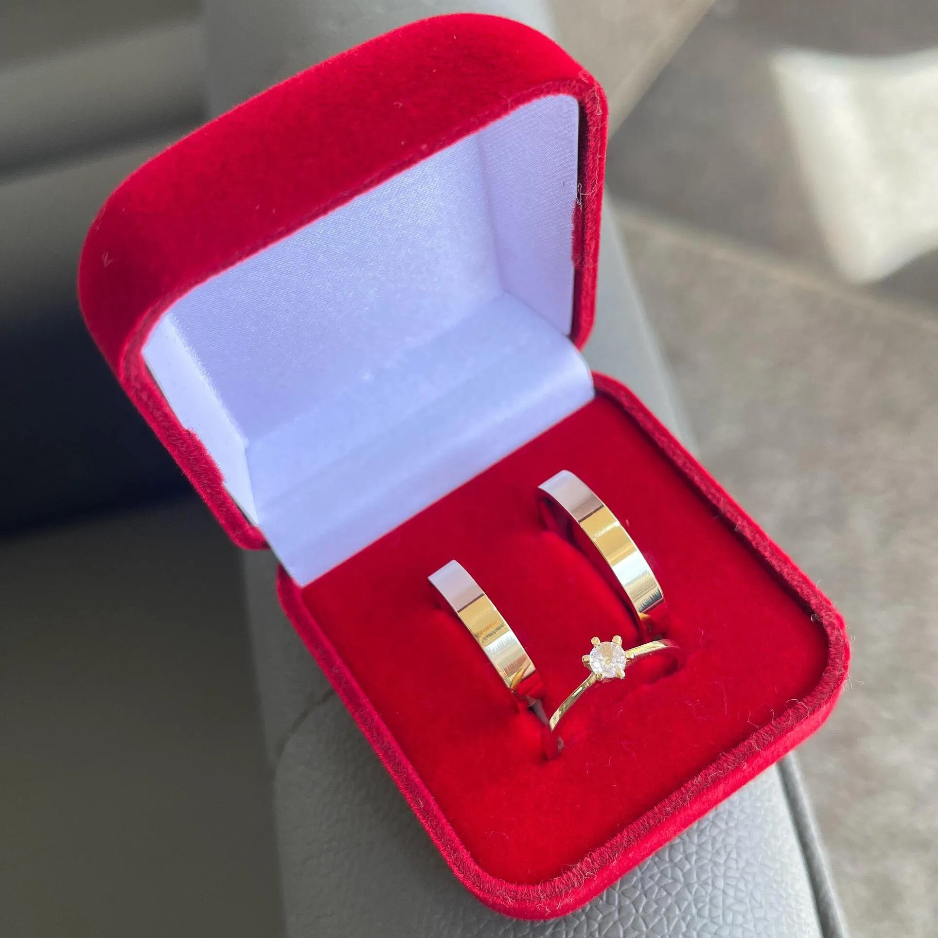 • Par de alianças em ouro 10k com revestimento em aço