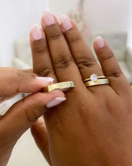 É uma aliança com estrutura interna em aço cirúrgico, recoberta por uma chapa de ouro 10k fixada com tecnologia avançada. Essa técnica proporciona a aparência luxuosa do ouro com uma estrutura resistente e confortável, garantindo maior durabilidade e brilho.